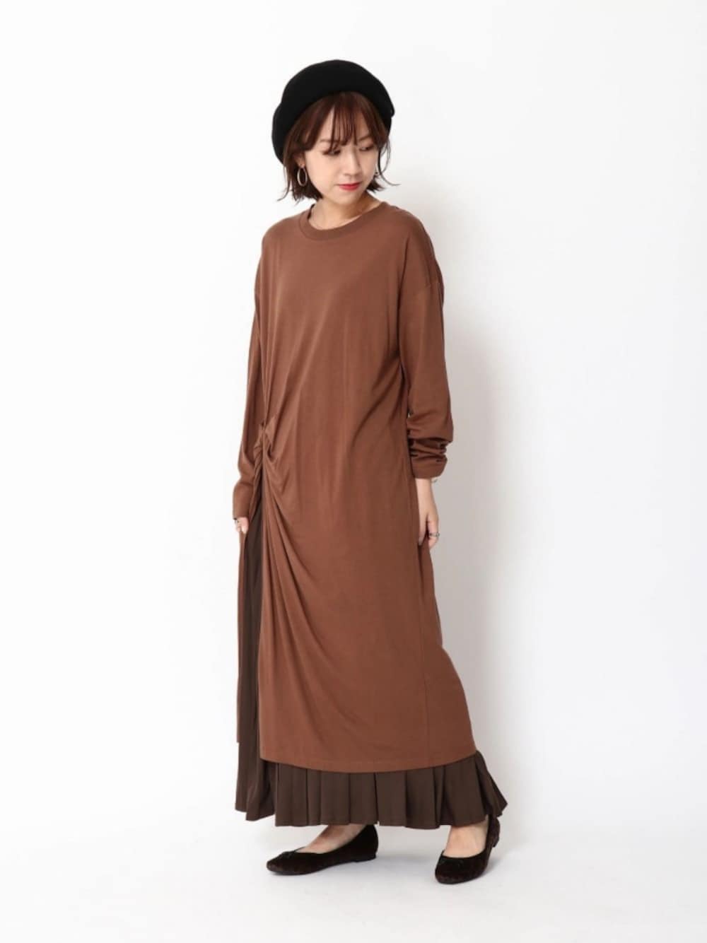 ねじりスリットワンピース◎ ちらっと見えるボトムがポイント◎ スカートでもパンツでもどちらでも◎