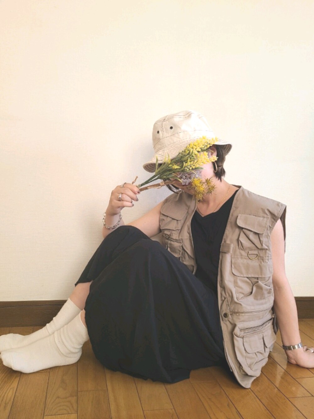 今日はぽっかぽかですね!! ワンピース一枚だと少し寂しかったのでメンズなベストと共に◎
