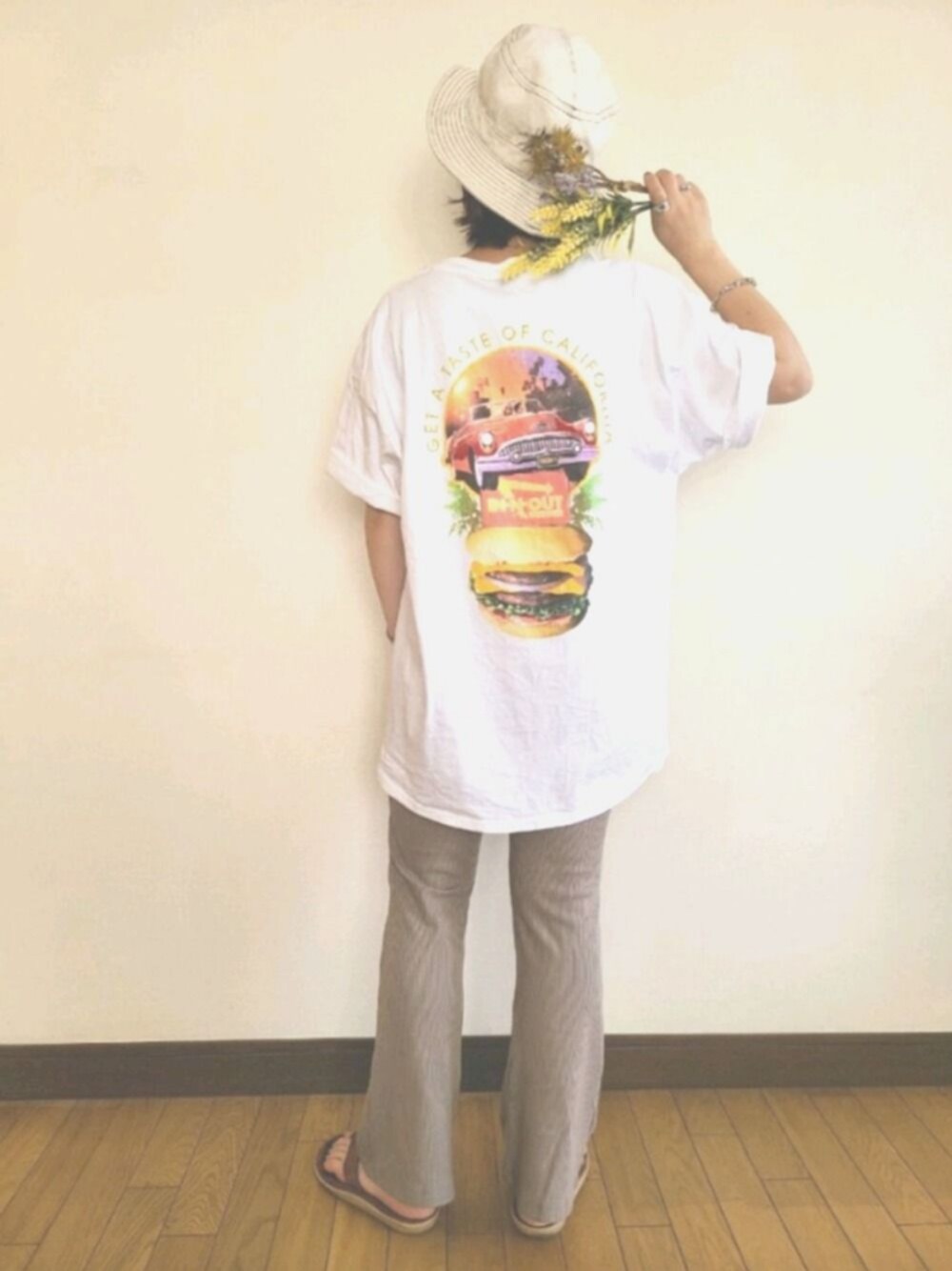 バックプリントどーん!!で一目惚れしたTシャツ。 かなりのオーバーサイズなのでスリムなリブパンツでメンズっぽくなりすぎず◎