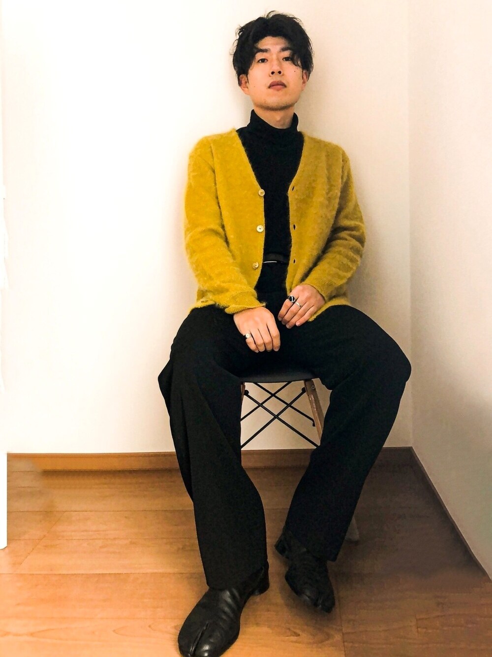 春コーデ!👔 カーディガンを主役にしたコーデです! イエローをポイントに他は全てブラックで色のトーンを抑えました よければInstagram、wearフォローお願いします!