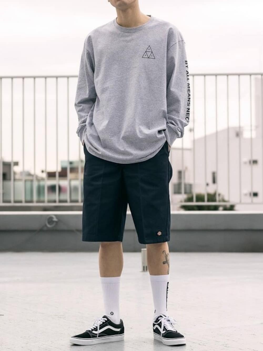 infoabsoのチノパンツ「Dickies/ディッキーズ 13インチポケットワークショーツ shorts チノパンツ スケーターショーツ ハーフパンツ カラーパンツ 2026年春夏」を使ったコーディネート