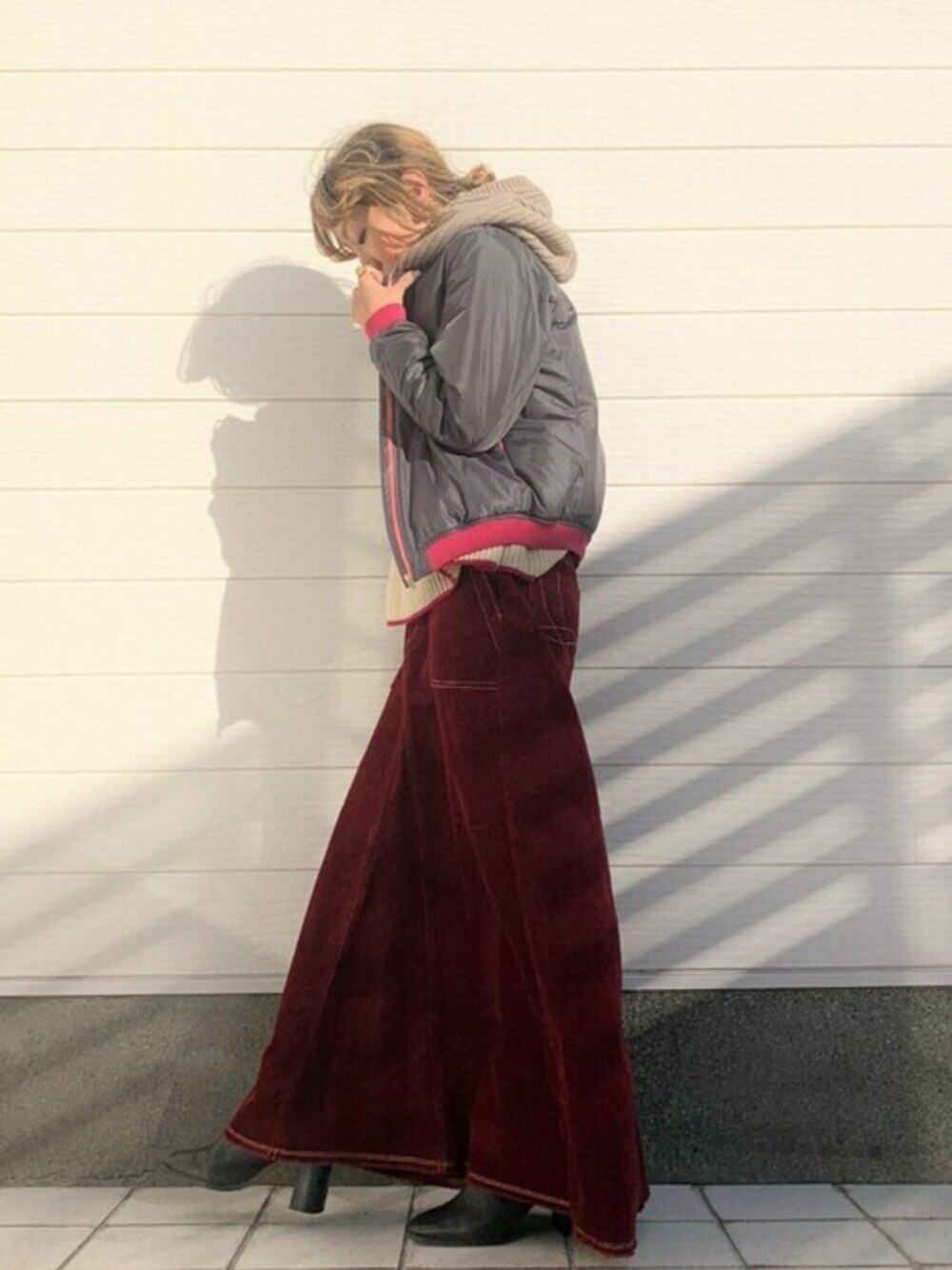 Q♥Official(Q manager)のスカート「コーデュロイロングスカート」を使ったコーディネート