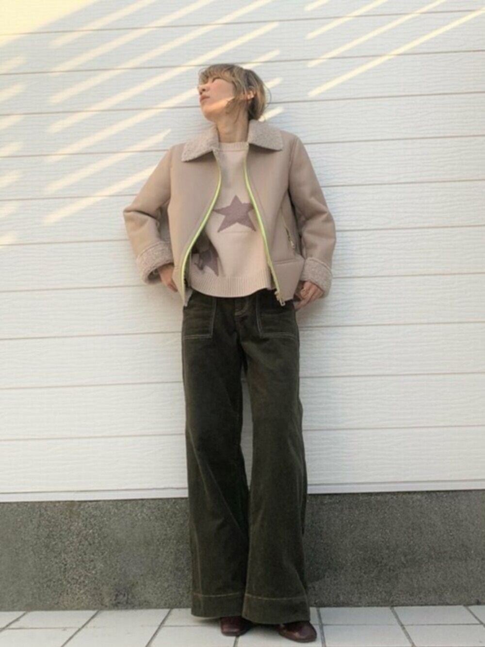 トレンドのムートンジャケットであったかコーデ