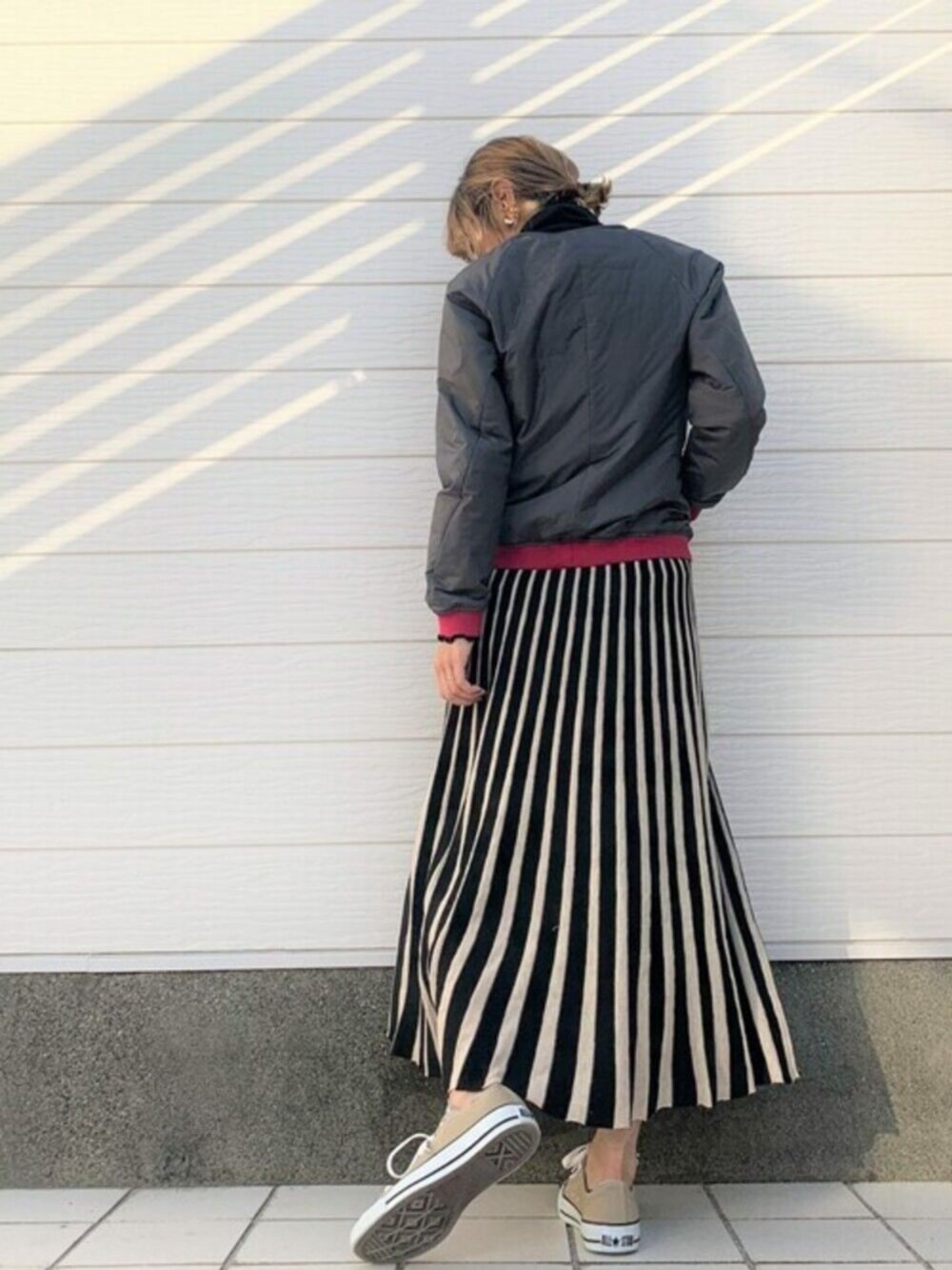 Q♥Official(Q manager)のスカート「ストライプニットスカート」を使ったコーディネート