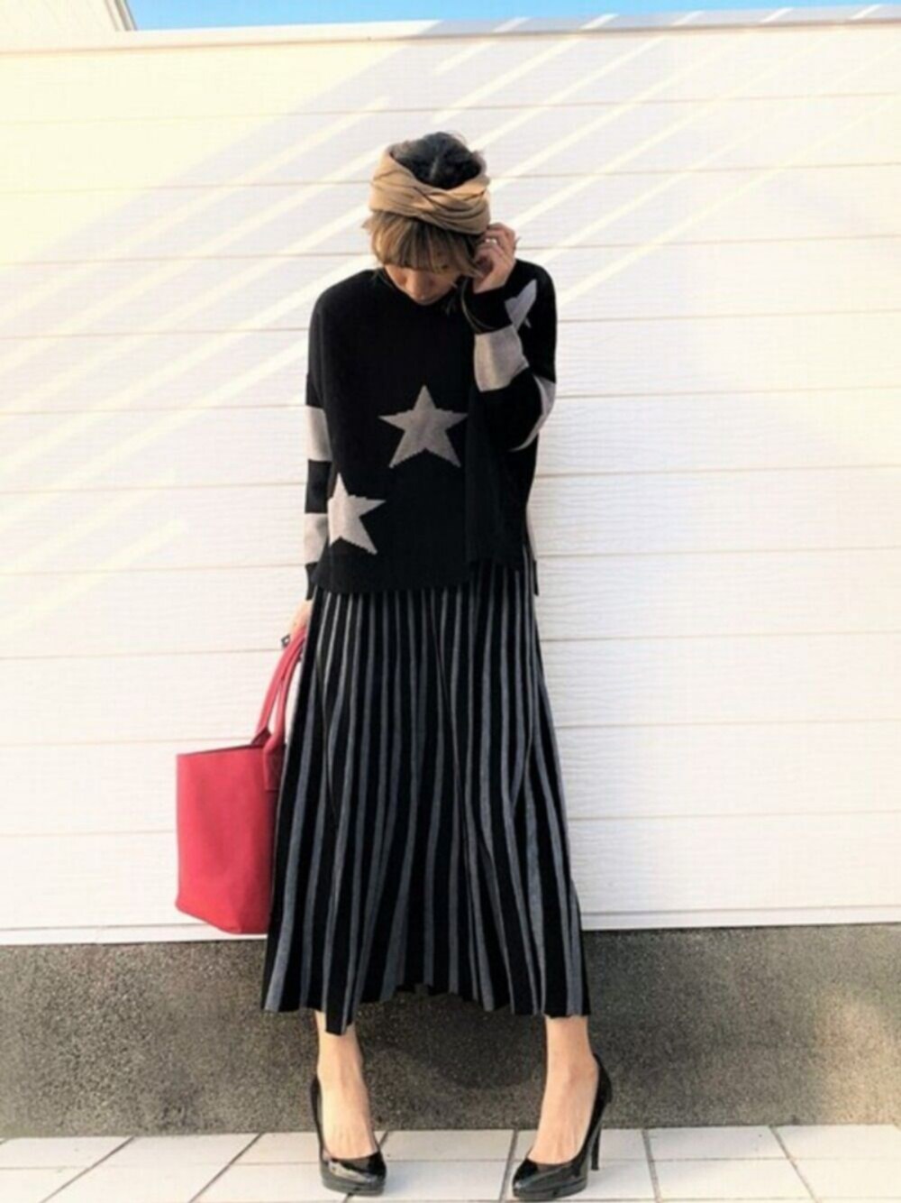 柄アイテムを組み合わせて、オシャレにコーディネート