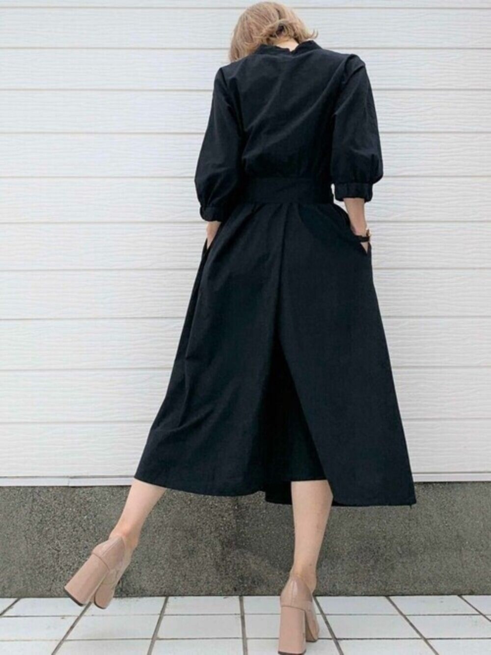 キレイめできちんと感のある膝下丈ワンピース。 一枚でスタイリングが決まる便利アイテムです♪