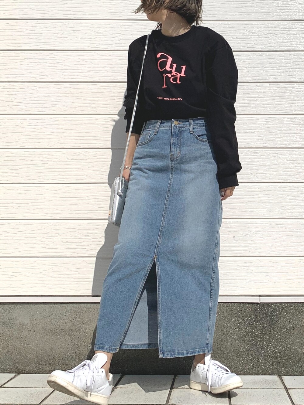 一部店舗限定販売のロゴロンTを使って、デニム合わせの定番コーデ