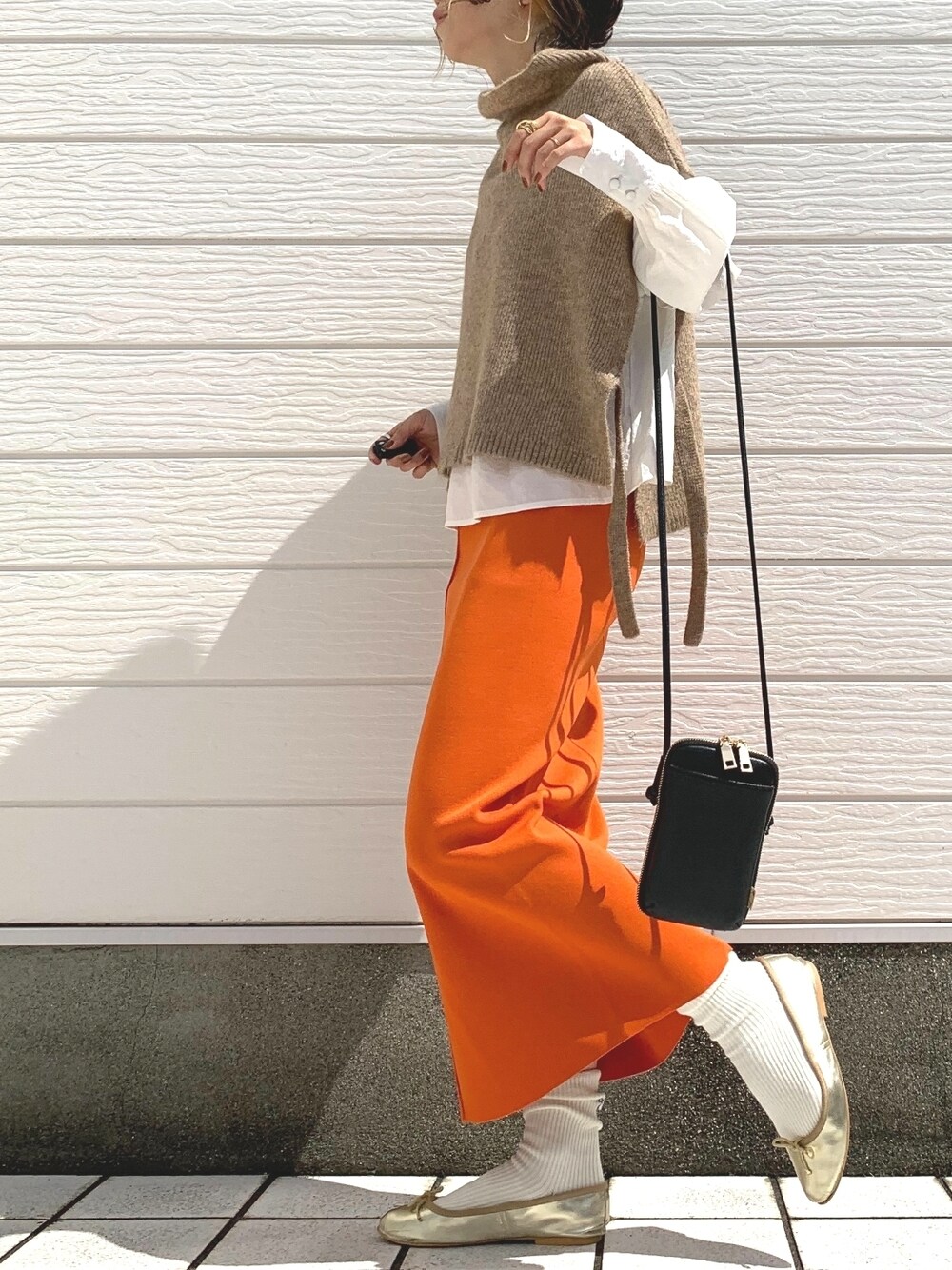 ベージュ×オレンジで秋の雰囲気満載のコーデです ホワイト&ブラックも合わせて、オトナカラーに仕上げました