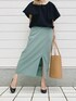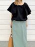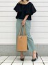 リネンライクな無地のトップス ふわふわのバルーン袖がかわいいアイテムです 裾がドロストになっているのでお洋服に合わせて絞り具合を調節できます 水浅葱色のタイトスカートはストレッチ素材なので着ていても楽ちん 色んな着回しが楽しめます