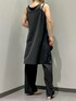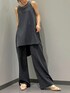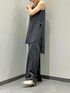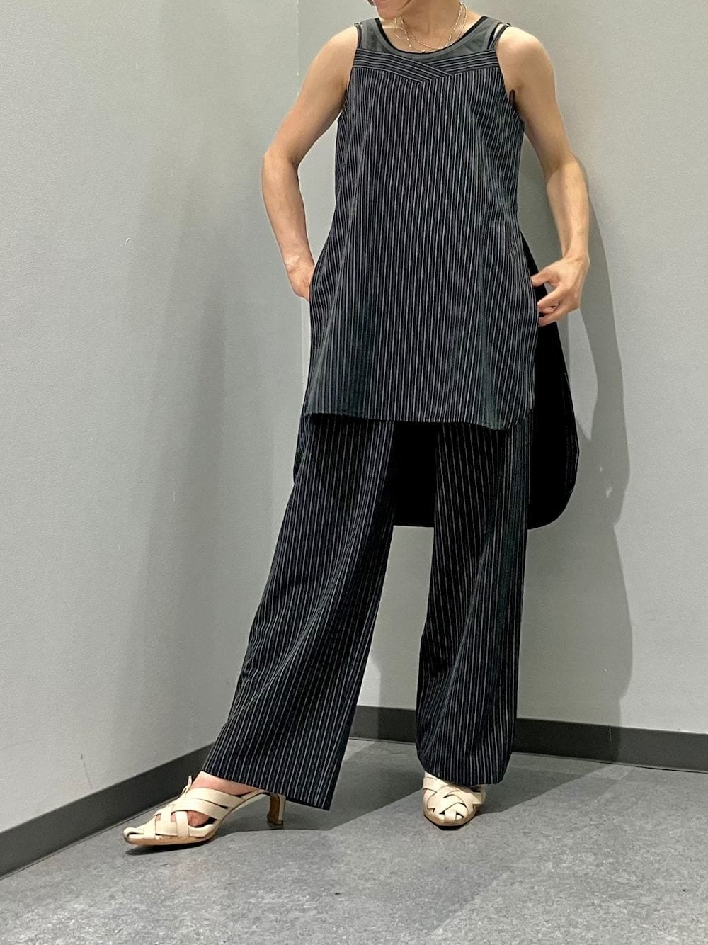 ピンストライプのキャミソールとパンツのセットアップ それぞれ別のお洋服とも合わせやすいアイテムです チュニック丈のキャミは深めのスリットがかわいいポイント パンツはゆったりワイドなので着ていて楽ちんです インナーはチュール&リブのレイヤードタンク こちらも別々で着用できます