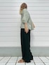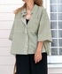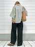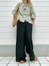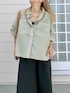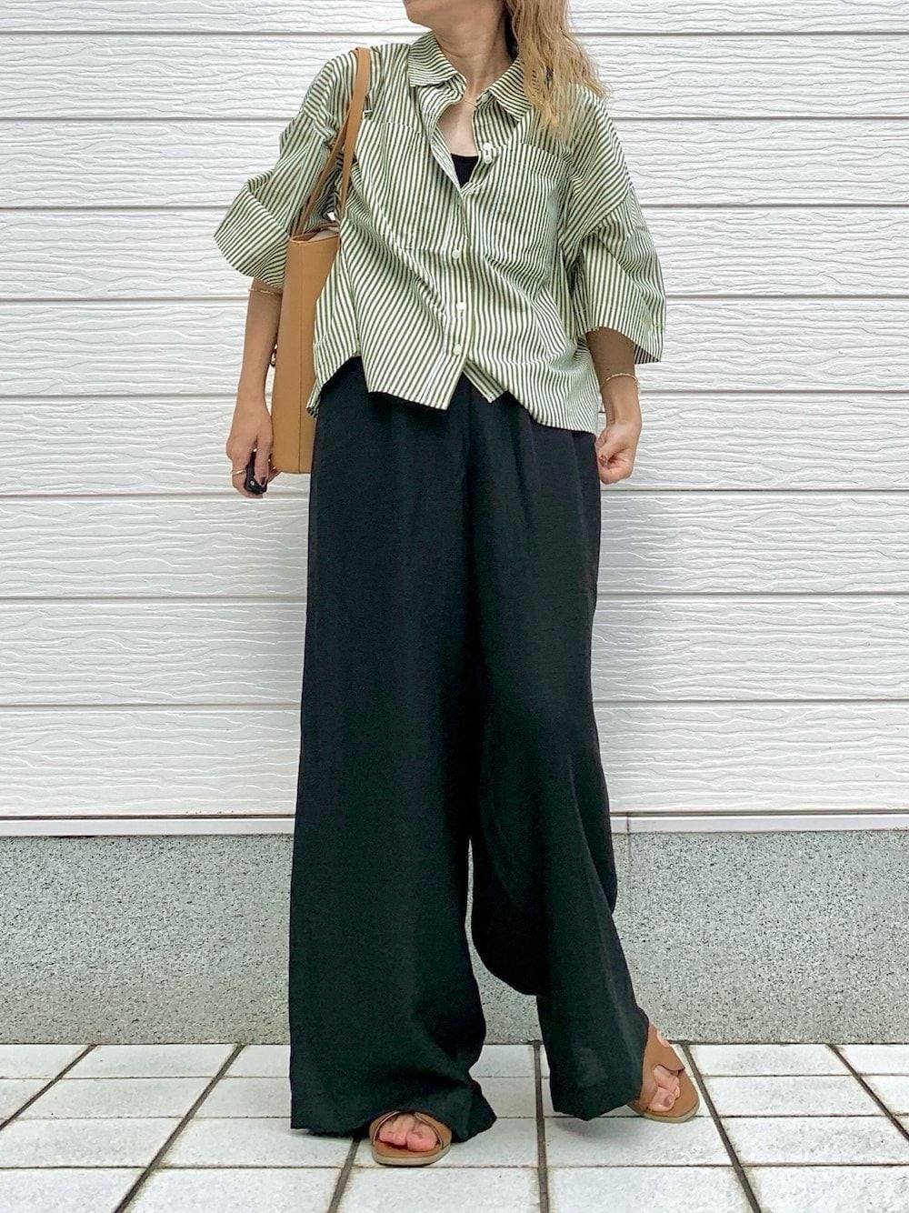 落ち着いたオリーブグリーンのストライプシャツ ワイドめなシルエットがかわいいアイテムです デニムやスカートとも合わせやすく、羽織としても重宝します 袖広め&長めなのでTシャツを着ても◎