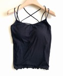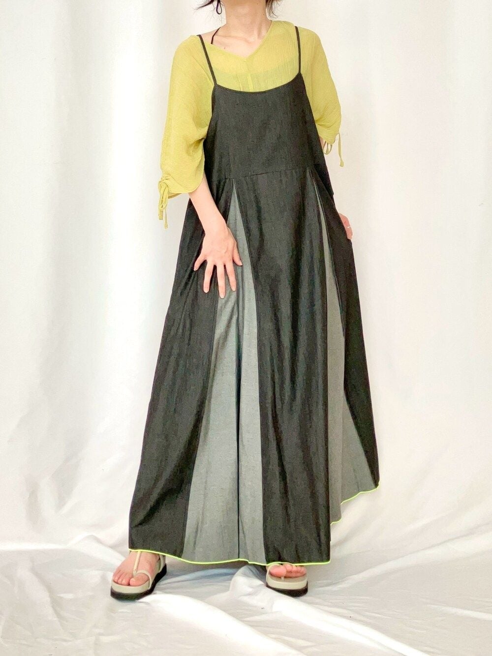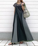 ギャザーブラウスとライトデニムワンピースのコーデ ブラウスのカラーとワンピースの裾の色を合わせてみました ブラウスの透け感とバッククロスキャミで後ろ姿までかわいい◎ 袖はドロストになっているのでお好みの雰囲気に調節できます