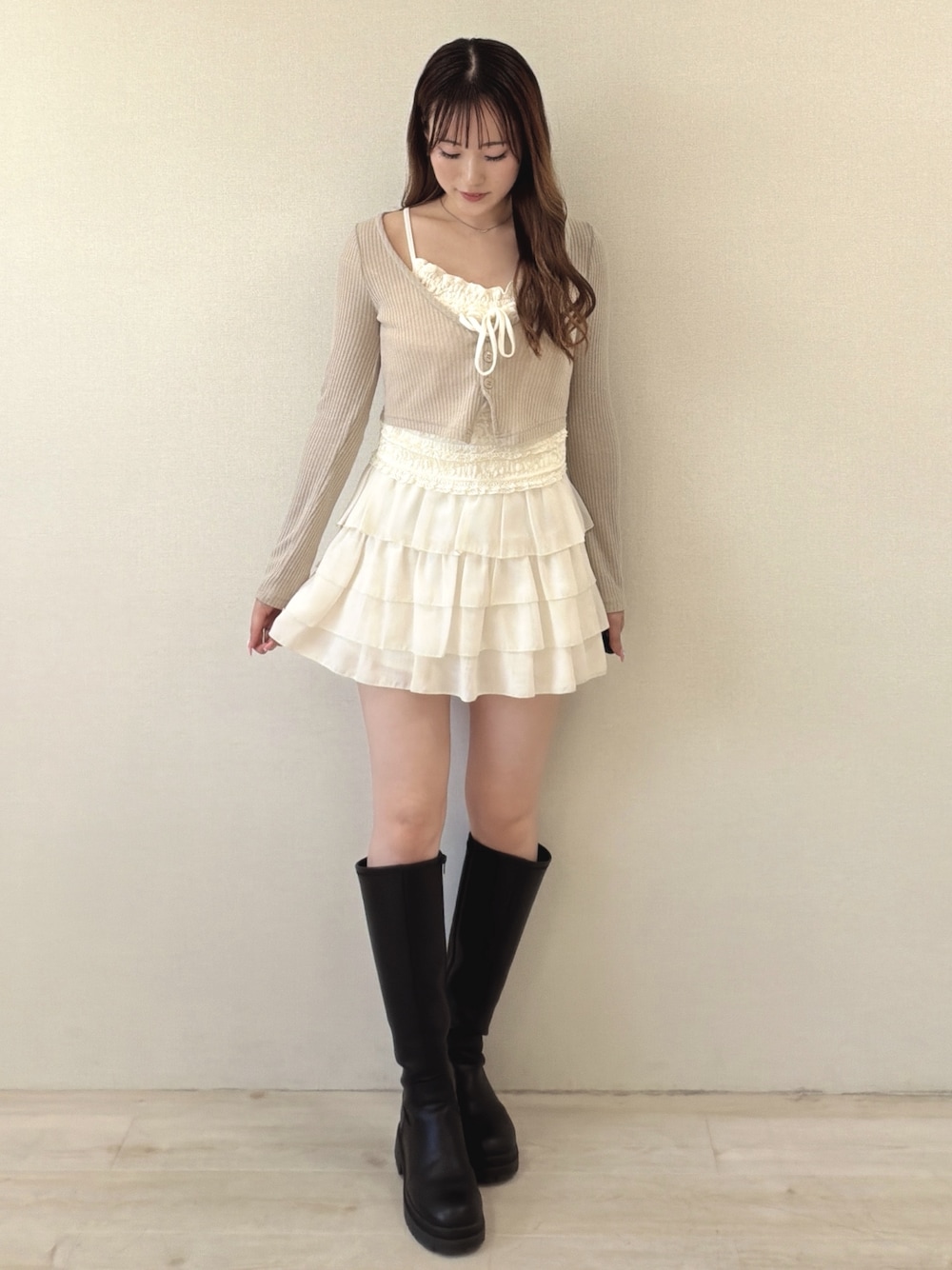 舞桜(INGNI 大宮ルミネ店)のTシャツ/カットソー「レースレイヤードカーデトップス」を使ったコーディネート