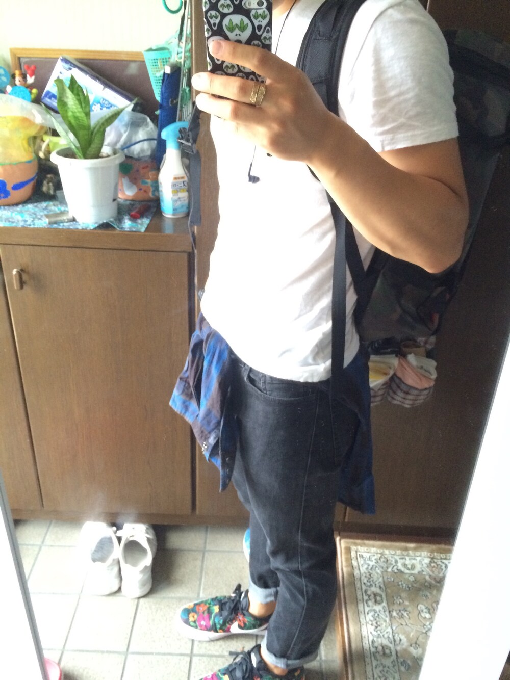 7/9 寒かったので黒パンツに半袖😤 靴は最近買ったお気に入り! 雨は嫌ですね😂