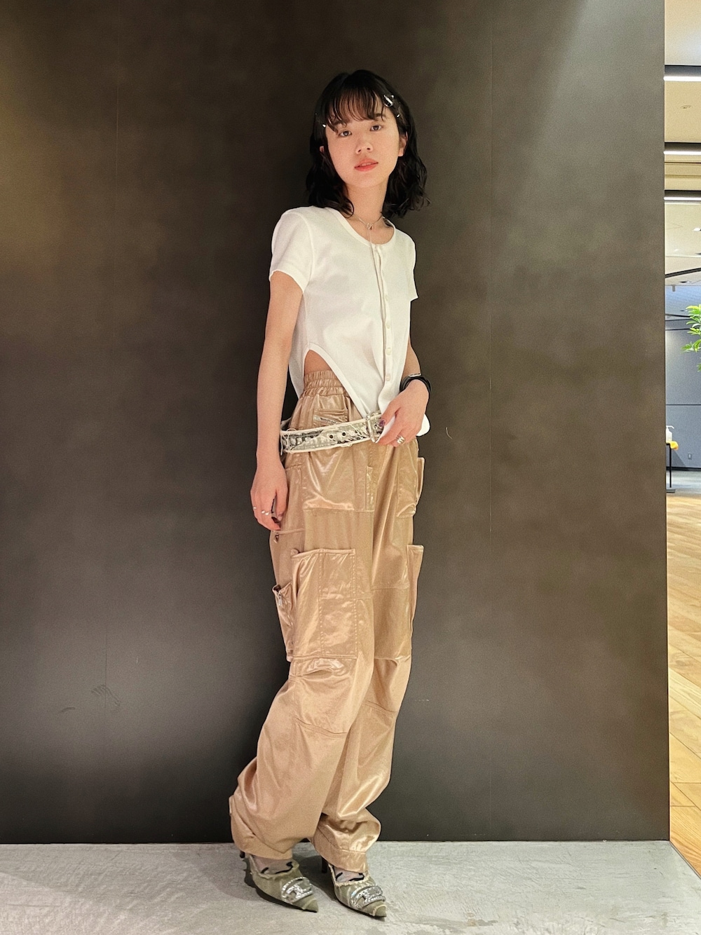 ingm(DIESEL クレアーレ)のTシャツ/カットソー「レディース 半袖 リブ トップス ベルトディテール」を使ったコーディネート