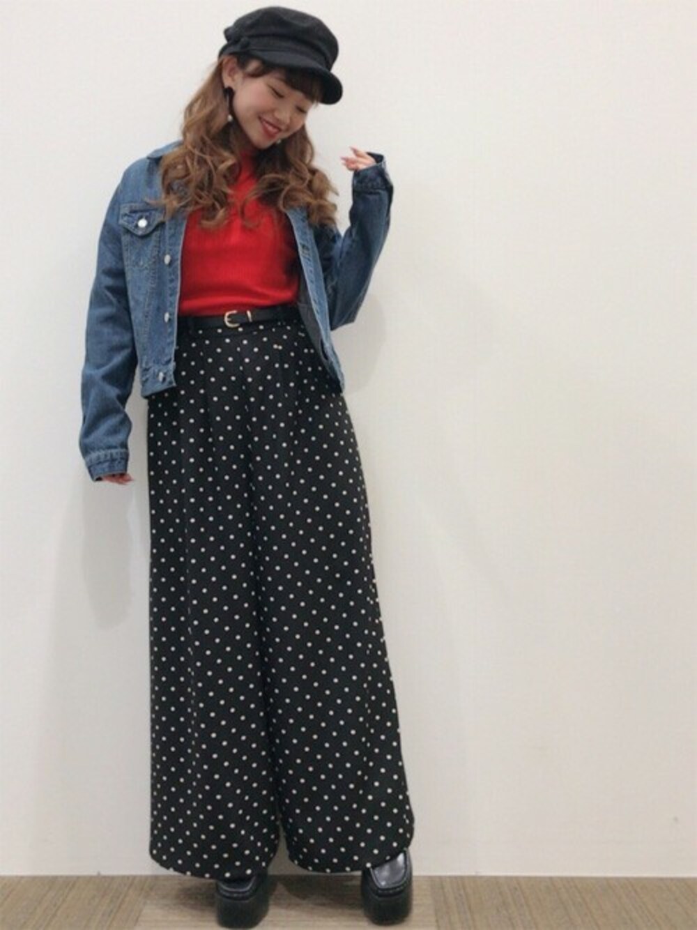 ワイドパンツはバックウエストがゴムになっており、程よいボリュームのあるデザインで体型カバーにもなり嬉しいポイントです! ボトムにボリュームがあるのでトップスはコンパクトな物にし、バランスを取りました!カラーを入れることで新鮮度アップさせました!