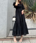 nao(INGNI 天神ソラリア店)のワンピース「Backリボンスクエアネックバルーンスリーブ/ワンピース」を使ったコーディネート