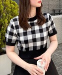 nao(INGNI 天神ソラリア店)のニット/セーター「チェック柄半袖ニット」を使ったコーディネート