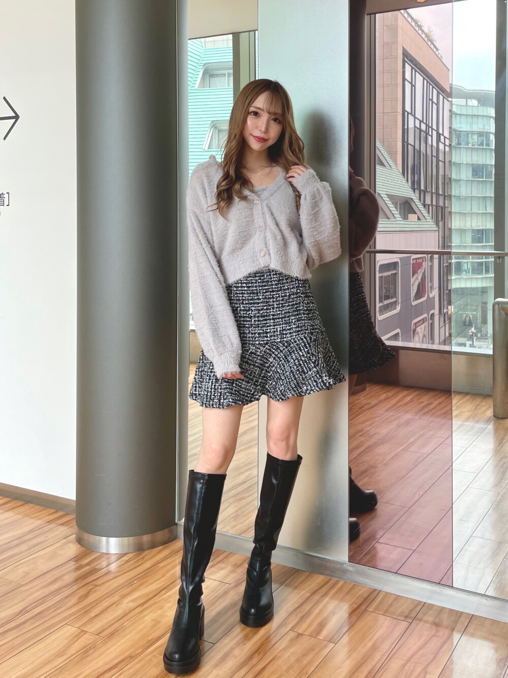 nao(INGNI 天神ソラリア店)のアンサンブル「フェザーショート丈ニットカーディガン+肩リボンキャミSET」を使ったコーディネート