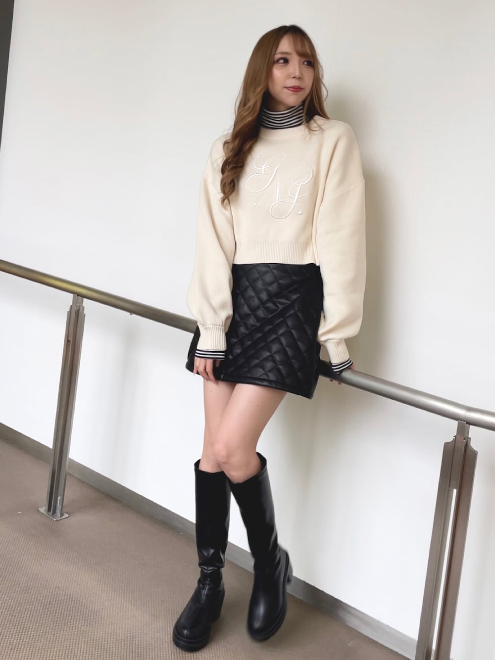 nao(INGNI 天神ソラリア店)のTシャツ/カットソー「胸刺しゅうロゴカットタートルトップス」を使ったコーディネート