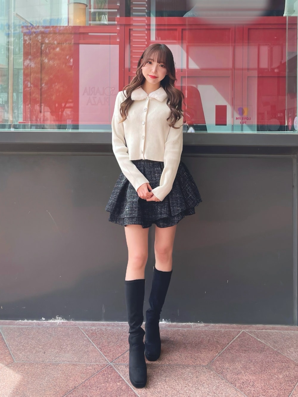 nao(INGNI 天神ソラリア店)のカーディガン/ボレロ「ファー付ニットカーディガン」を使ったコーディネート