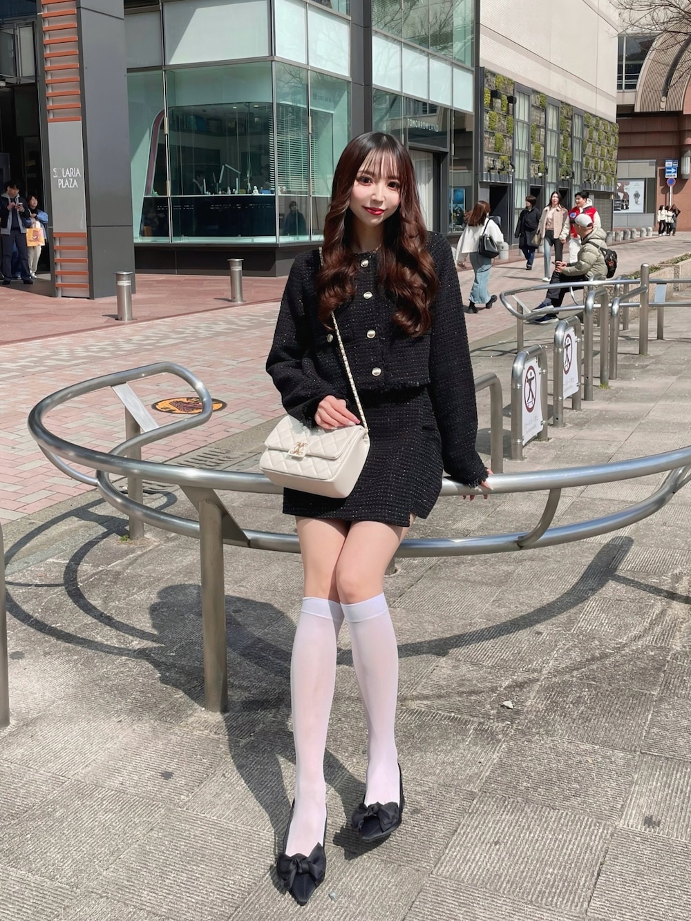 キラキラのラメがアクセントになったツイード柄ジャケット🩷ᩚ🌙 写真映え抜群です🫶 黒は高級感増しますね🖤✨