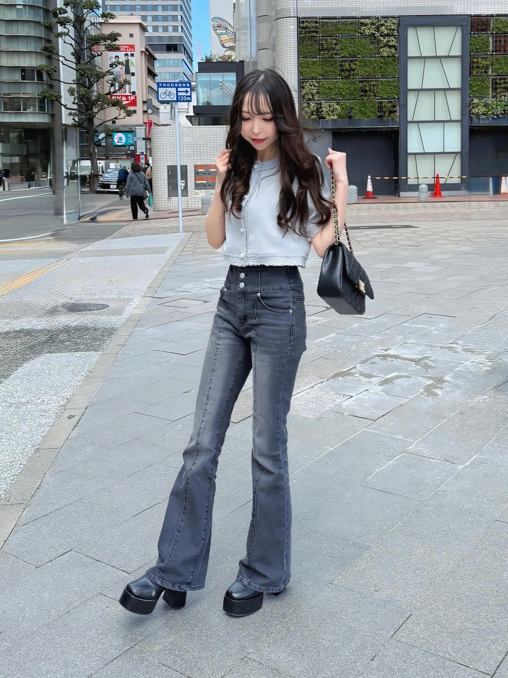 大人気だったツイードジャケットに半袖バージョンが登場しました💐💭 素材が薄くなって夏でも快適に着用いただけます♡ フリンジデザインが高見え✨お洒落見えするグレーがおすすめです〜👀🫶 フレアデニムはハイウエストデザインで脚長効果抜群🙌🏻長めの丈感ですがヒールと合わせたらちょうど良い長さでした🙆