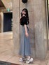 透け感のあるチュールをあしらった大人トップス🐈⬛💭 カシュクールデザインがより上品に見せてくれます🥰 肩開きデザインでヘルシーな肌見せができるのでクロでも重たくならず着用いただけます🖤✨