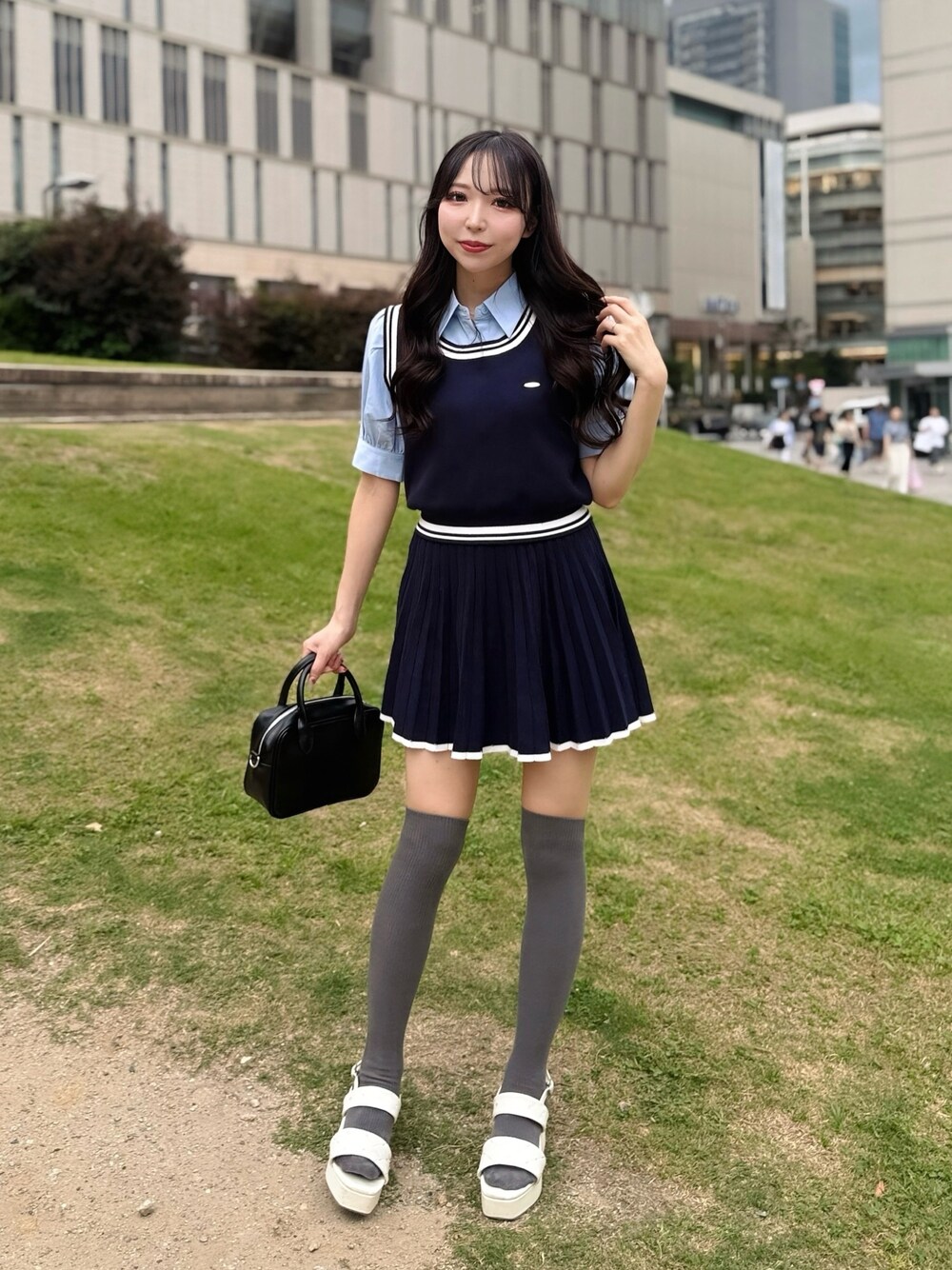nao(INGNI 天神ソラリア店)のセットアップ「ニットベスト+ニットミニスカパン/セットアップ」を使ったコーディネート
