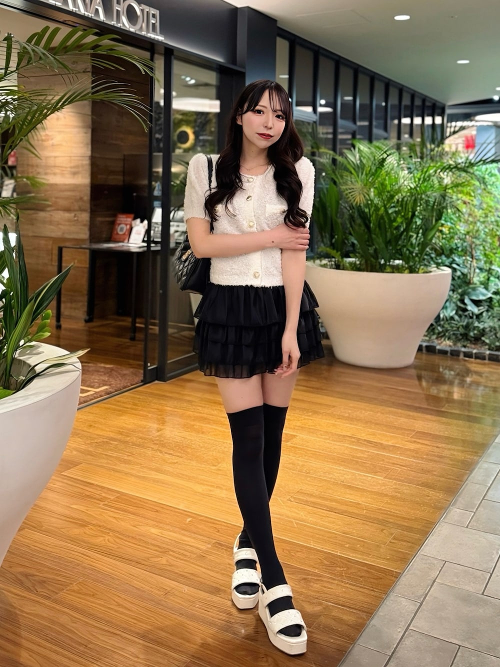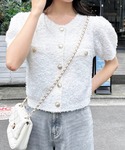 フェザーが編みこまれた凹凸のあるファンシーヤーン仕様🫧思わず触りたくなるモコモコな手触りです☁️ 高見えする金ボタンがアクセントになった1枚です🪽✨ シアーフリルミニスカートと合わせて軽やかでクラシカルなコーデにしました🪽 デニムと合わせた韓国コーデもおすすめ🧸