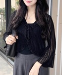 ふんわりと広がるAラインシルエットなガーリーワンピースにブラックのレースカーディガンで引き締めて大人可愛いコーデ🖤🪽 カーデは透け感のあるレースが上品な印象に💐✨