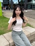 フロント部分にレースとリボンがあしらわれた新作トップス🎀 デコルテが綺麗に見えるネックラインです☁️🫧 そしてウエスト部分はサイドギャザーデザインでこなれ感のある1麻衣☺️ ボトムは新作のポケットレースデニムパンツ💐 シルエットがとにかく綺麗で足を長く、ウエストを細く見せてくれるワイドデザイン❣️お尻のポケットにはレースが付いているのでガーリーなトップスとも相性抜群のデニムです🍒後ろ姿まで可愛くなれちゃいます🪽