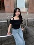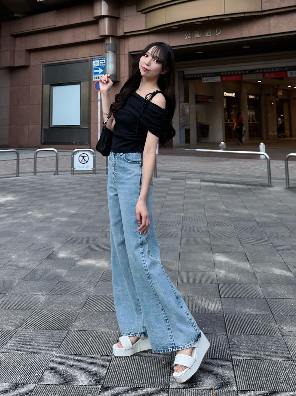 薄手でサラサラとした手触りのオフショルトップス👀 折り返し部分が広いのでカジュアルすぎずさりげない裾のレースも可愛い☺️🫧 肩紐は解けるので長さの調節も可能です🙌🏻 ボトムは裾にかけて広がる綺麗なシルエットのワイドパンツ💭Mサイズで丈感ちょうどよかったです🪽✨