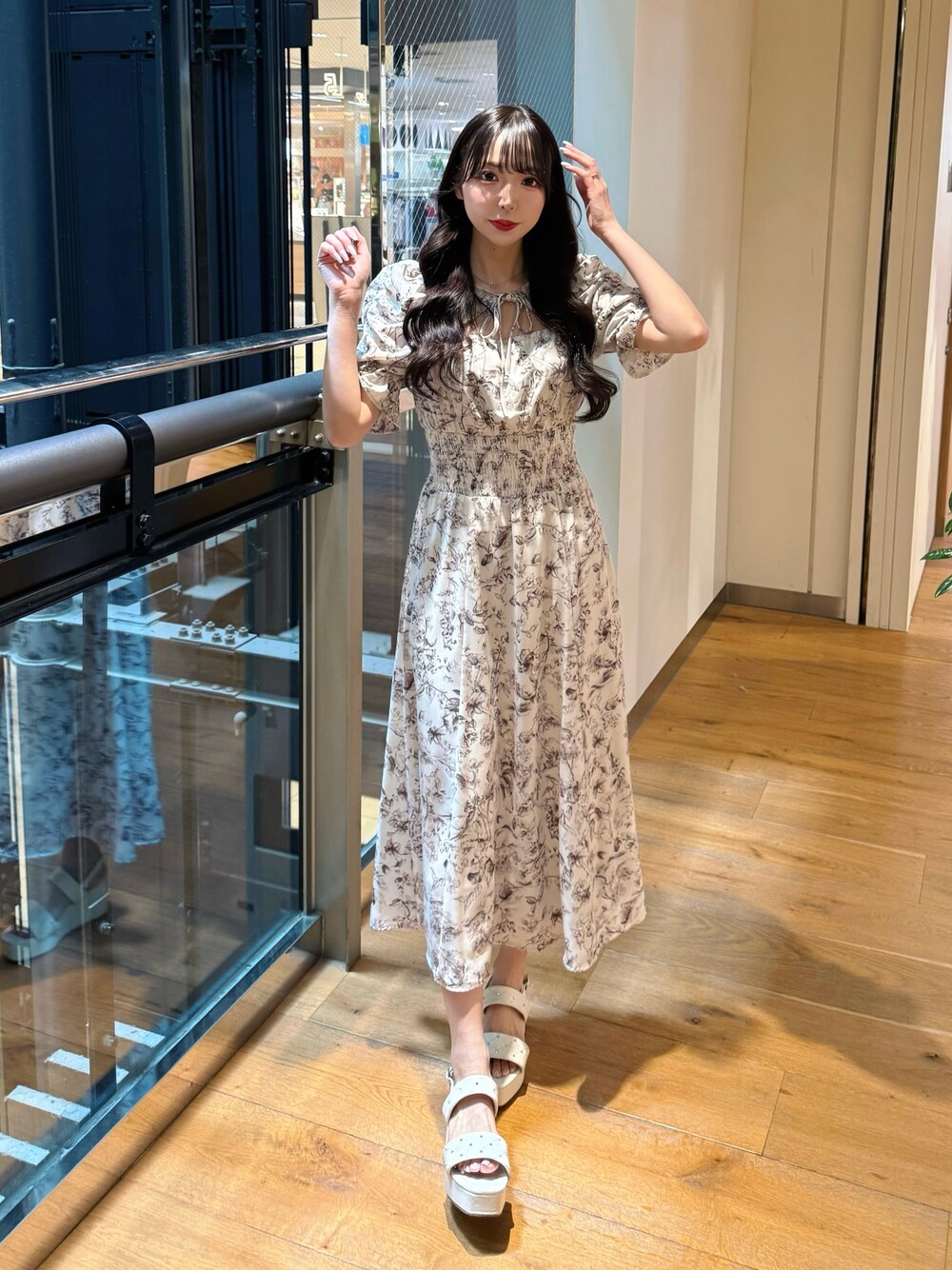 nao(INGNI 天神ソラリア店)のワンピース「デコルテオープン花柄ワンピース」を使ったコーディネート