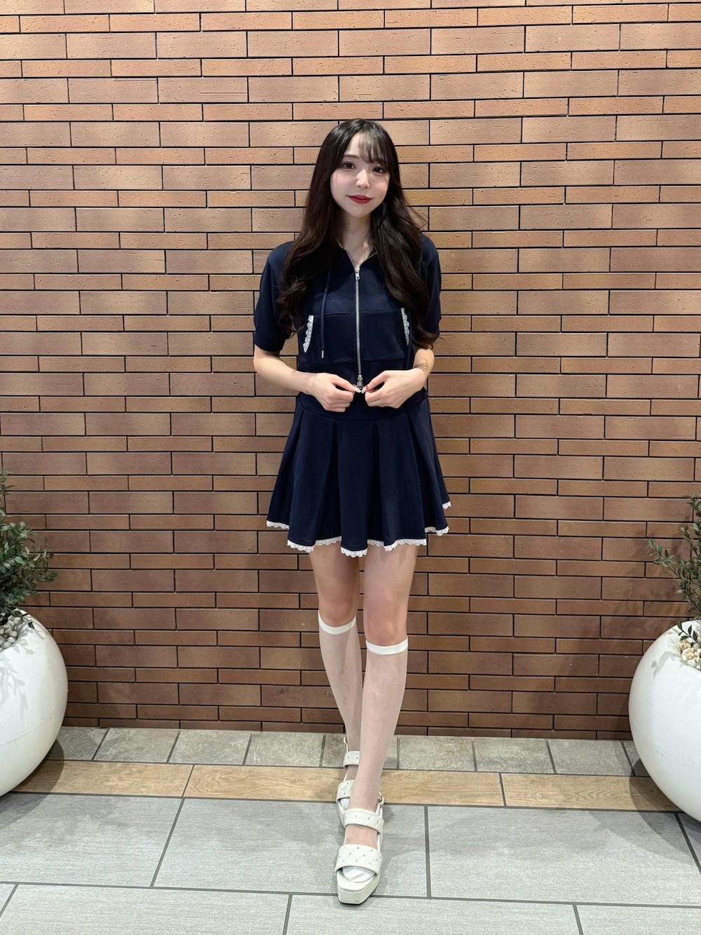 nao(INGNI 天神ソラリア店)のスカート「裾レースミニスウェットプリーツスカート」を使ったコーディネート