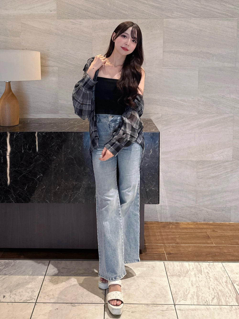 nao(INGNI 天神ソラリア店)のシャツ/ブラウス「シアーチェックビッグシャツ」を使ったコーディネート