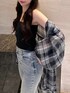 軽やかなシアー素材で透け感たっぷりのチェックシャツ✨デニムと合わせた定番の大人コーデは挑戦しやすいのでおすすめですー🫶🏻 日差しや冷房対策にも◎ 今から使えるおすすめの秋っぽアイテムです🐿️
