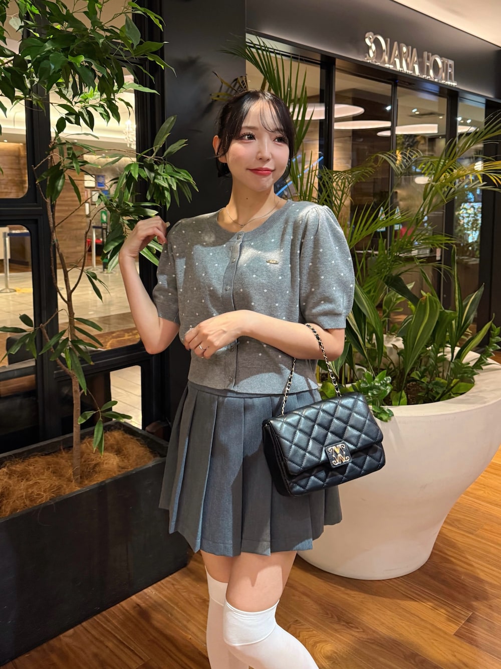 nao(INGNI 天神ソラリア店)のカーディガン/ボレロ「ドット柄ジャガード半袖ニットカーディガン」を使ったコーディネート
