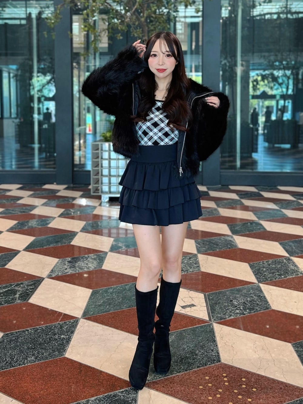 ふわふわのファーブルゾンはこれからの時期大活躍のアイテムです🖤 光沢のあるなめらかな毛並みのファーが上品な印象を引き立てます✨ ボリュームのあるアウターにはミニボトムを合わせるとバランスよく着こなせます🎀