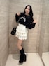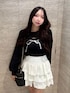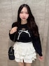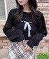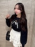 大人気のデコルテオープンニット🖤 待望の再入荷です🫶🏻 クロも大人っぽくて甘すぎない可愛さがあります✨ ボトムはリボンの色と合わせてホワイトに🧁