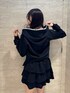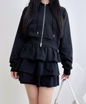 パーカーセットアップコーデ🖤 カジュアルなイメージがあるパーカーもレースとフリルミニスカートでガーリーな着こなしが叶います🌷 ブラックはレースが目立つのでおすすめ❣️