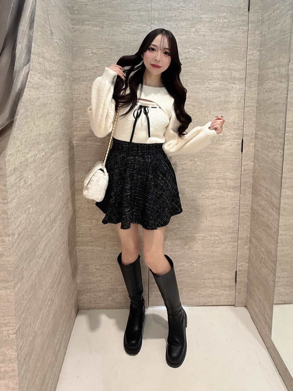 店頭人気ナンバーワンアイテムです🎀あざと可愛いコーデに欠かせないリボンとフェザー🤍フワフワフェザーにリブデザインなので程よく体にフィットしてボトムにインしやすいのも嬉しいポイント🦋新作のバックもで触り良くて可愛い🥰冬に沢山使いたいバッグです✨
