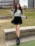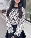 チェック柄×リボンがガーリーなニットトップス🎀 首周り、裾、袖口にはリブが入っていてメリハリのあるスタイリングが叶います🖤 デニムでカジュアルダウンさせるのも🙆🏼‍♀️