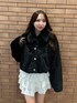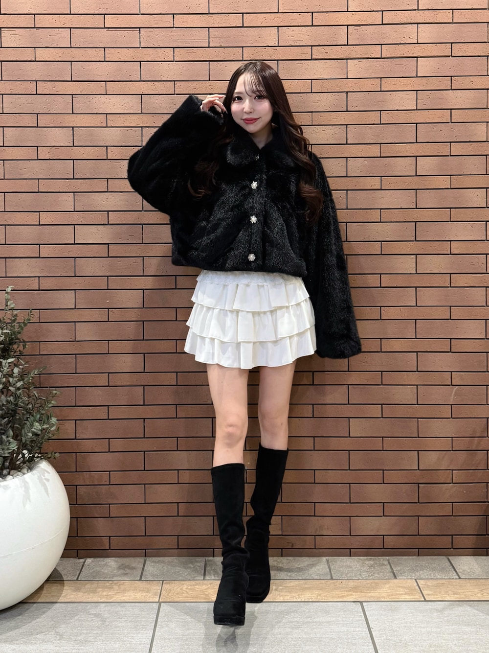 お花のキラキラビジューがアクセントになったファーブルゾン🌷✨ブラックはより光沢感があって高見え効果抜群です💎ロングボトムもミニボトムにも合わせられるのでボトムを選ばない点も着回ししやすいポイントです☃️