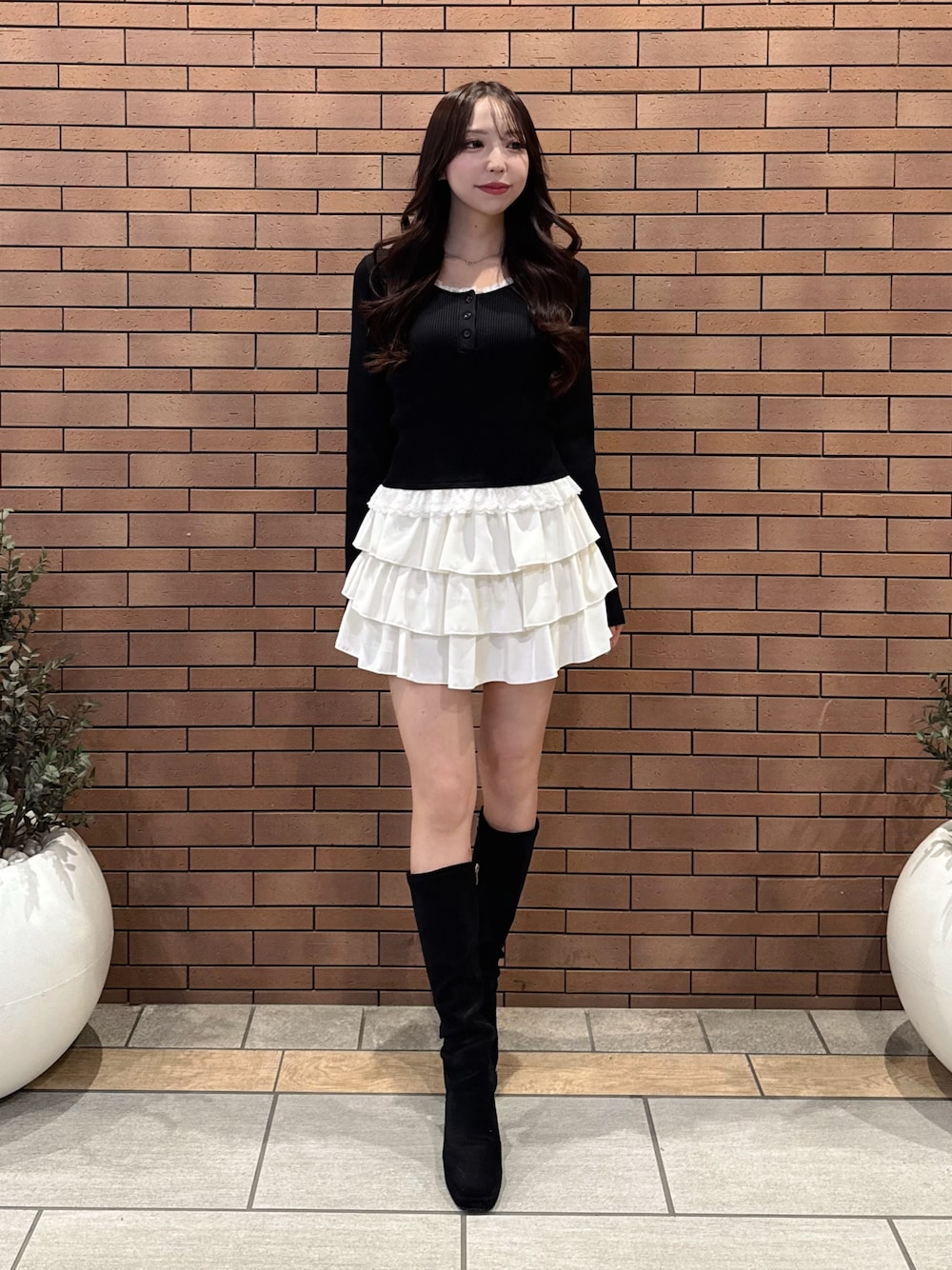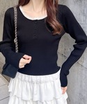 リブデザインで伸縮性に優れてるので程よく体にフィットします🪄インナー使いもしやすいコンパクトさ🥹 首周りと裾についたレースが華やかな印象を引き立てます✨ 合わせるボトムによって印象が変わる使いやすさ抜群のニットです🎀