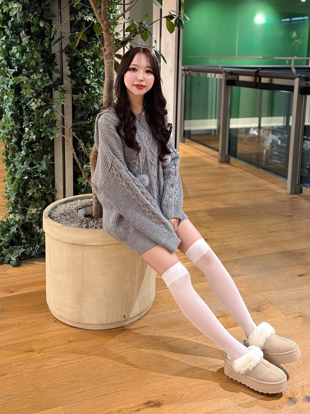 nao(INGNI 天神ソラリア店)のパーカー「ポンポン付ケーブルチュニックニットパーカー」を使ったコーディネート