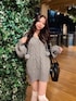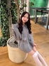 ポンポンとケーブル編みが可愛らしいニットパーカー💓長めのチュニック丈でゆったりとしたシルエットです🎀 トレンドのフード付きニットはぜひ今年ゲットしていただきたいアイテムです❄️✨