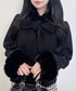 フロントのビッグリボンが目を引くショートコート🎀 リボンとファーを取り外してシンプルなスタイルも楽しめるマルチなアウターです🤍 上品なブラックのアウターにチドリ柄を合わせて大人可愛いコーデの完成です🙆🏼♀️