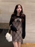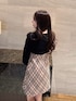 nao(INGNI 天神ソラリア店)のワンピース「デコルテオープンチェック柄切替ニットワンピース」を使ったコーディネート