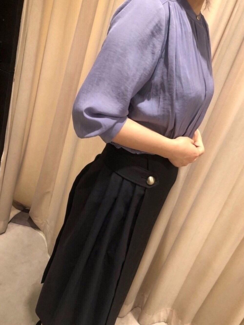 Shokoのシャツ/ブラウス「パウダーサテンギャザーブラウス」を使ったコーディネート